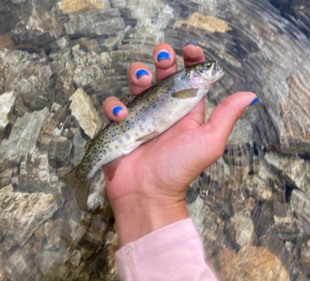 The Cutthroat here are amazing. Every fish I caught still had its adipose fin, and I landed over 20 in two days. Most fish ranged from 12–20 inches. I was able to spot a few well over that range. The water is deep and glass-clear, which makes for incredible visuals but tricky casting — most of the shoreline is steep, rocky, and loud. It’s vital to watch your shadow, stay quiet on approach, and find little pockets where you can cast a fly.
